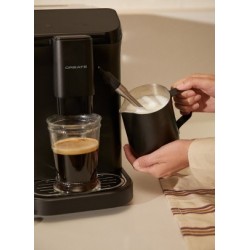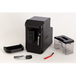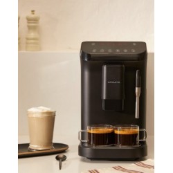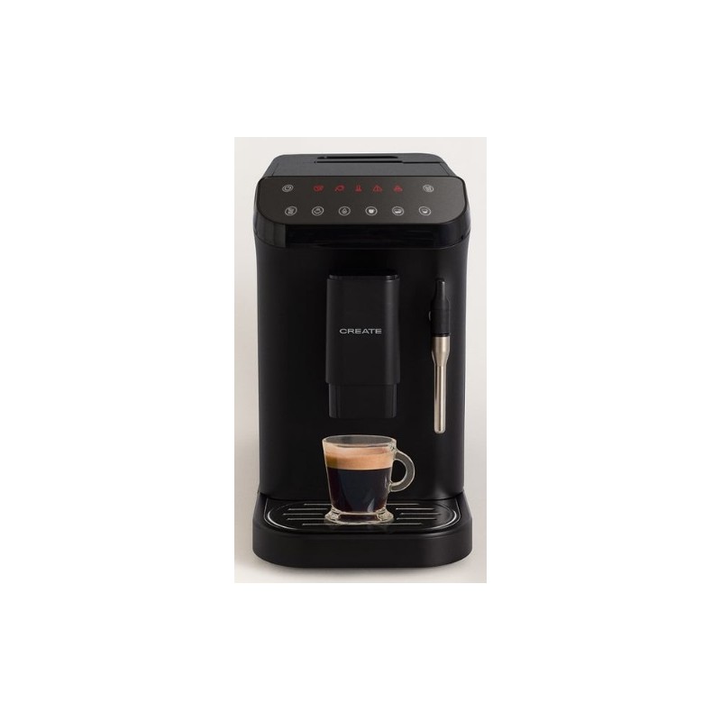 Cafetera super automática de fácil manejo, diseño elegante y de color negro mate. Especialmente diseñada para cocinas pequeñas. Prepara fácilmente y pulsando un botón tu bebida favorita. Desde café expreso, largo y cortos. También prepara 2 cafés a la vez. Dispone de una lanza que se gira a 42º para calentar la leche y así poder hacer café cappuccino o también café latte machiatto. Fácil de limpiar, con un depósito para tu café favorito, otro para el agua y por ultimo un depósito donde almacenar el café molido usado. Dispone de función de auto limpieza para que no te preocupes de nada. Por la compra de esta cafetera obtendrás de regalo: