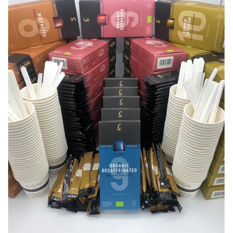 Pack recomendado para esas personas que quieren disfrutar de los diferentes tipos de café que disponemos a un solo clic y con todos los complementos gratuitos para que no falte de nada. Si te gusta el café solo y no quieres ningún acompañamiento gratuito, recuerda que puedes entrar aquí para escoger solamente las cápsulas.