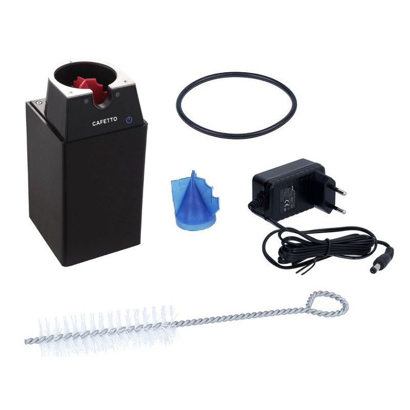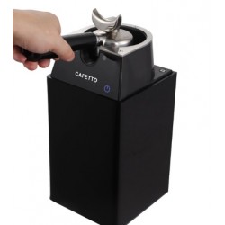 Limpiador eléctrico profesional de posos de café. Pequeño, silencioso e ideal para mantener un ambiente silencioso y así evitar ruidos molestos a los clientes a la hora de limpiar el porta filtro para hacer un nuevo café. Se puede encastar en la encimera mediante tornillos haciendo un agujero redondo para la caída de los posos de café y también dispone de un contenedor de posos metálico y pintado en negro para colocarlo de sobremesa de formato moderno. Este limpiador es una incorporación elegante e innovadora al conjunto de herramientas de cualquier barista. Además por la compra de este limpiador, tendrás de regalo 1 kilo de café en grano BARISTA PRO 96, 1 kilo de café en grano BARISTA PRO 90 y 1 kilo de café descafeinado BARISTA PRO 68 valorados en más de 74€.