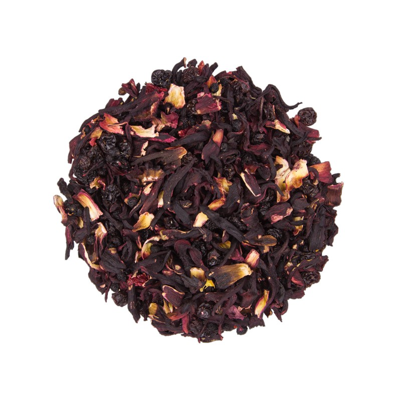 Combinación ácida y dulce con mucho carácter. Compuesta de diferentes tipo de frutos rojos, con hibisco, pasas y flor de saúco. Obtenemos una tisana refrescante y digestiva. Esta tisana es el punto de partida para cualquier persona que desea iniciarse en el mundo de las infusiones, el placer de tomar una infusion de sabor agradable. Elegante combinación de frutos rojos con hibisco y flores de saúco. De color rojo intenso en una bebida rica en vitamina C con virtudes antioxidante. Una tisana afrutada con un toque marcadamente ácido para tomar al atardecer. Relajante y digestivo.